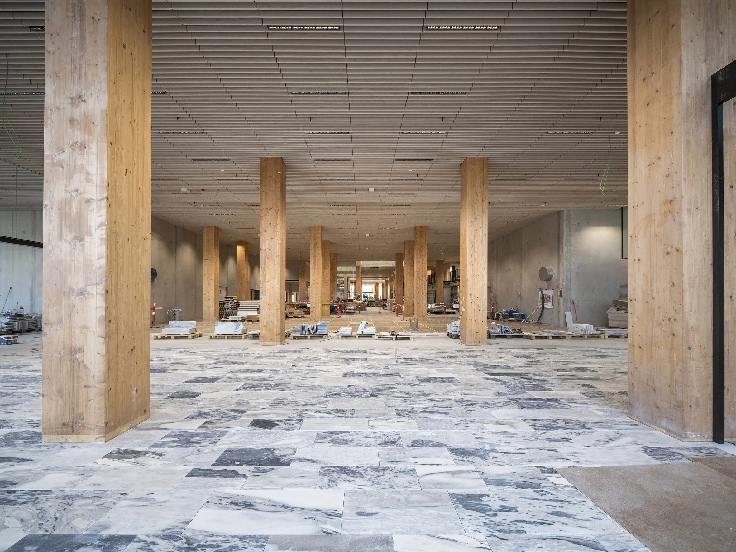 Projektet er tegnet af arkitektfirmaet Henning Larsen og bliver et af Danmarks største træbyggerier med lejemål op til 26.000 m².