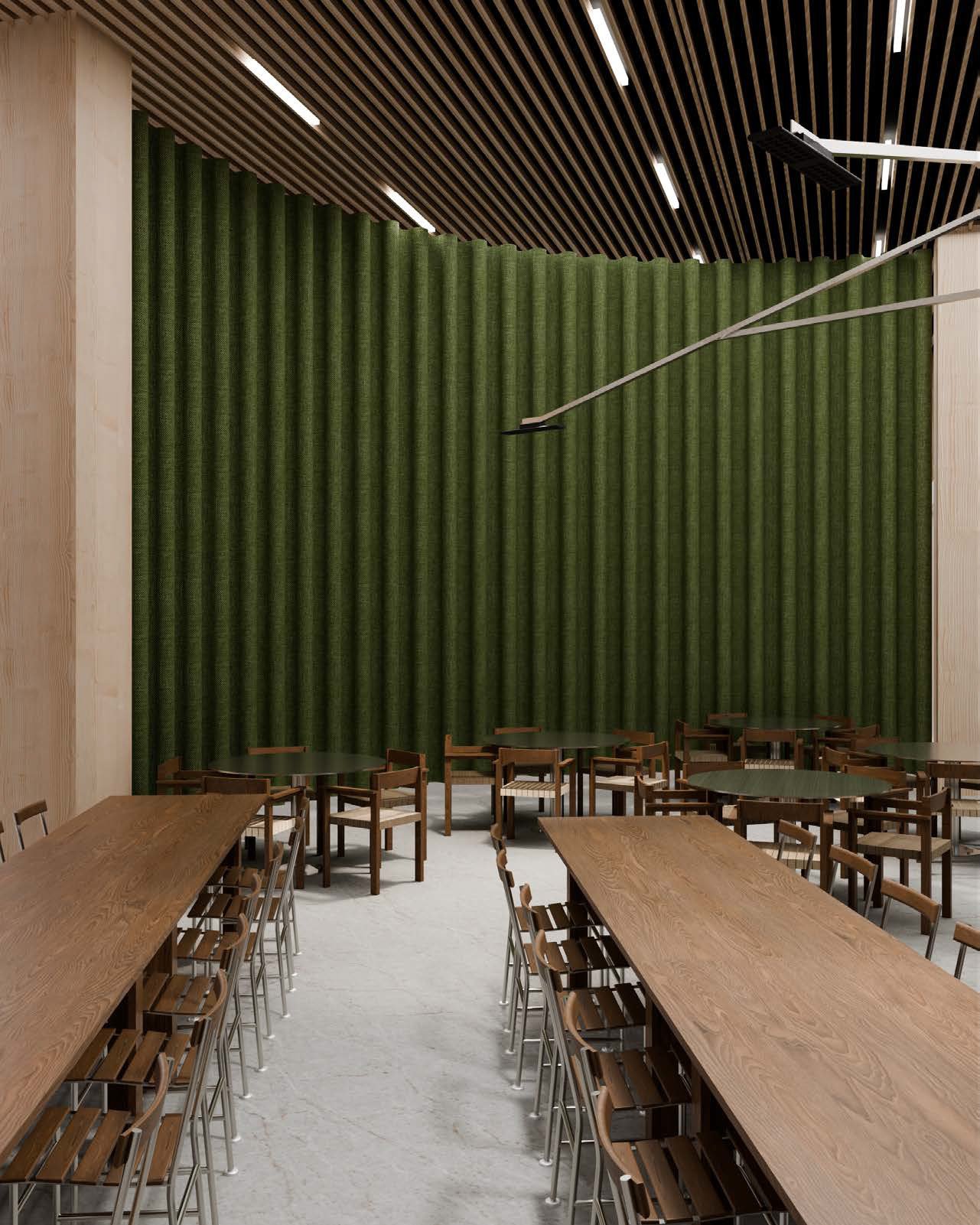 Indtag frokosten i den smagfuldt indrettede fælles kantine med over 5 meter til loftet og plads til 360 spisende gæster.